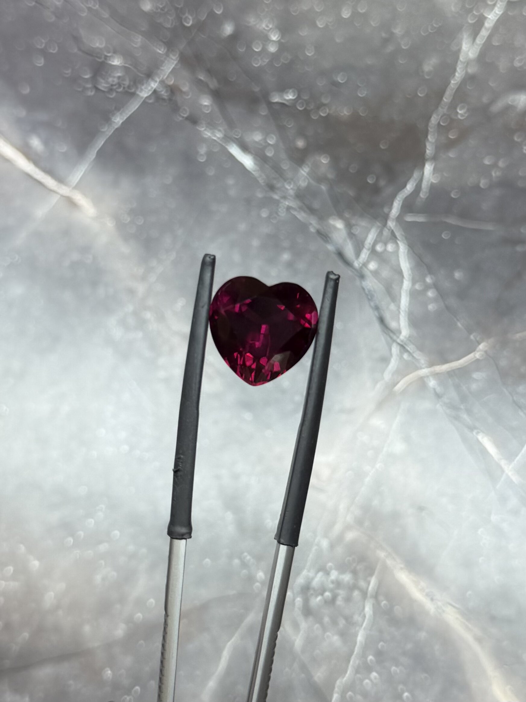 Гранат родолит в огранке сердце.