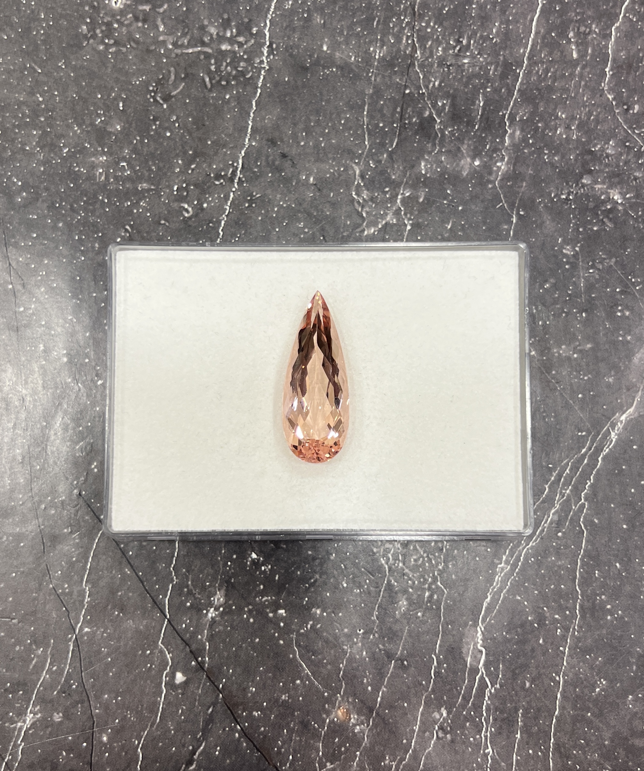 Морганит с весом 20.84 карат в огранке груша. Морганит — розовая, розовато-персиковая, оранжеватая разновидность берилла. Своей красивой пастельной окраской морганит обязан примеси марганца. Некоторые морганиты имеют полностью натуральный оттенок, другие могут подвергаться термической обработке и/или облучению для удаления оранжевых тонов. Результат такого облагораживания стабилен и не диагностируется в геммологических лабораториях, поэтому никак не влияет на стоимость камня. Посмотреть камень вживую можно в нашем шоу-руме, предварительно записавшись через форму обратной связи. Если вы не нашли подходящий камень из готового ассортимента, обращайтесь к нам за услугой огранки под заказ. Мы поможем вам выбрать оттенок, определиться с размером, формой и типом огранки и приступим к выполнению заказа. Вы получите камень с правильными пропорциями и хорошей полировкой.