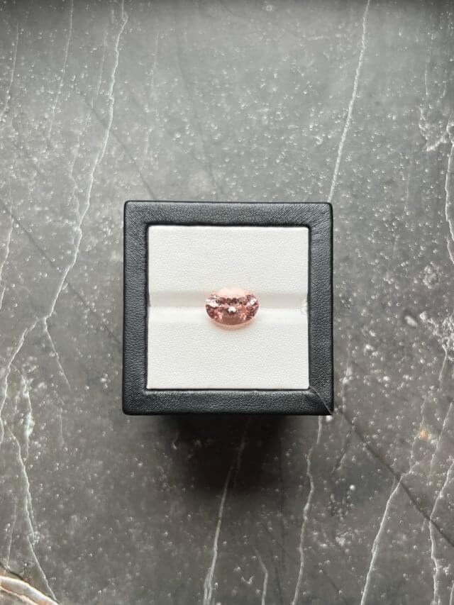 Персиковый морганит с весом 5.90 карат в огранке овал.