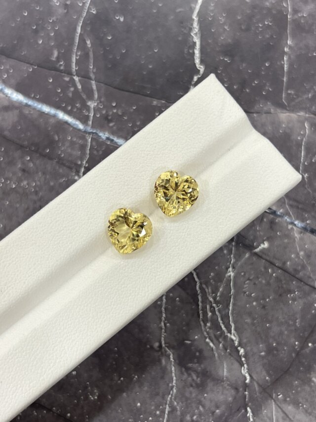 Цитрин в огранке сердце насыщенного желтого цвета.