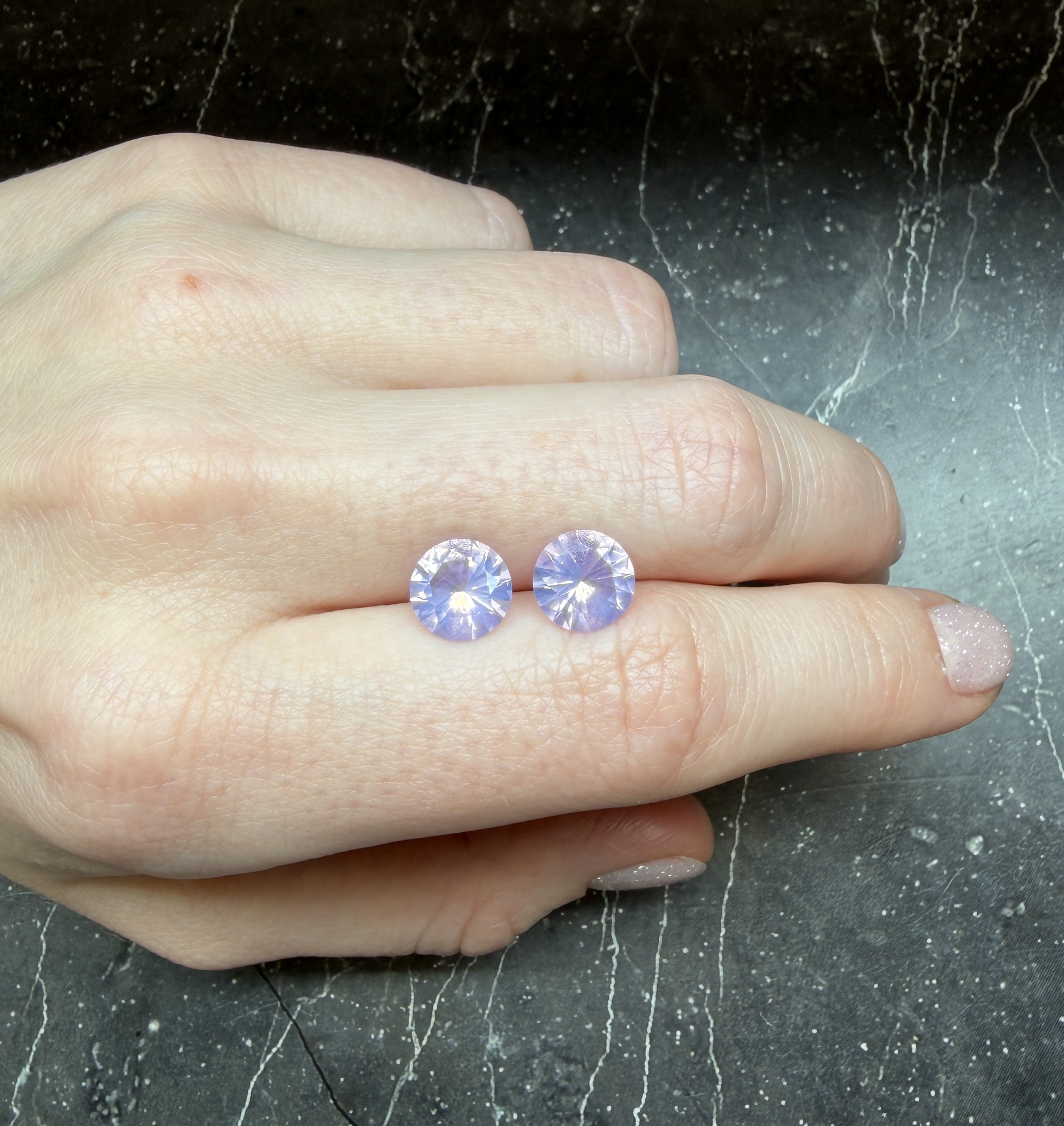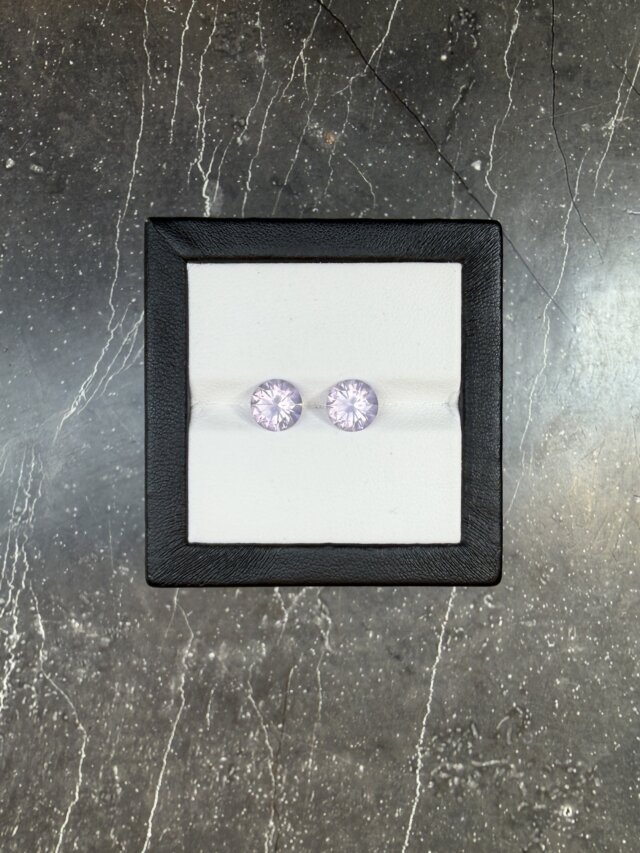 Пара лавандовых кварцев в огранке круг.