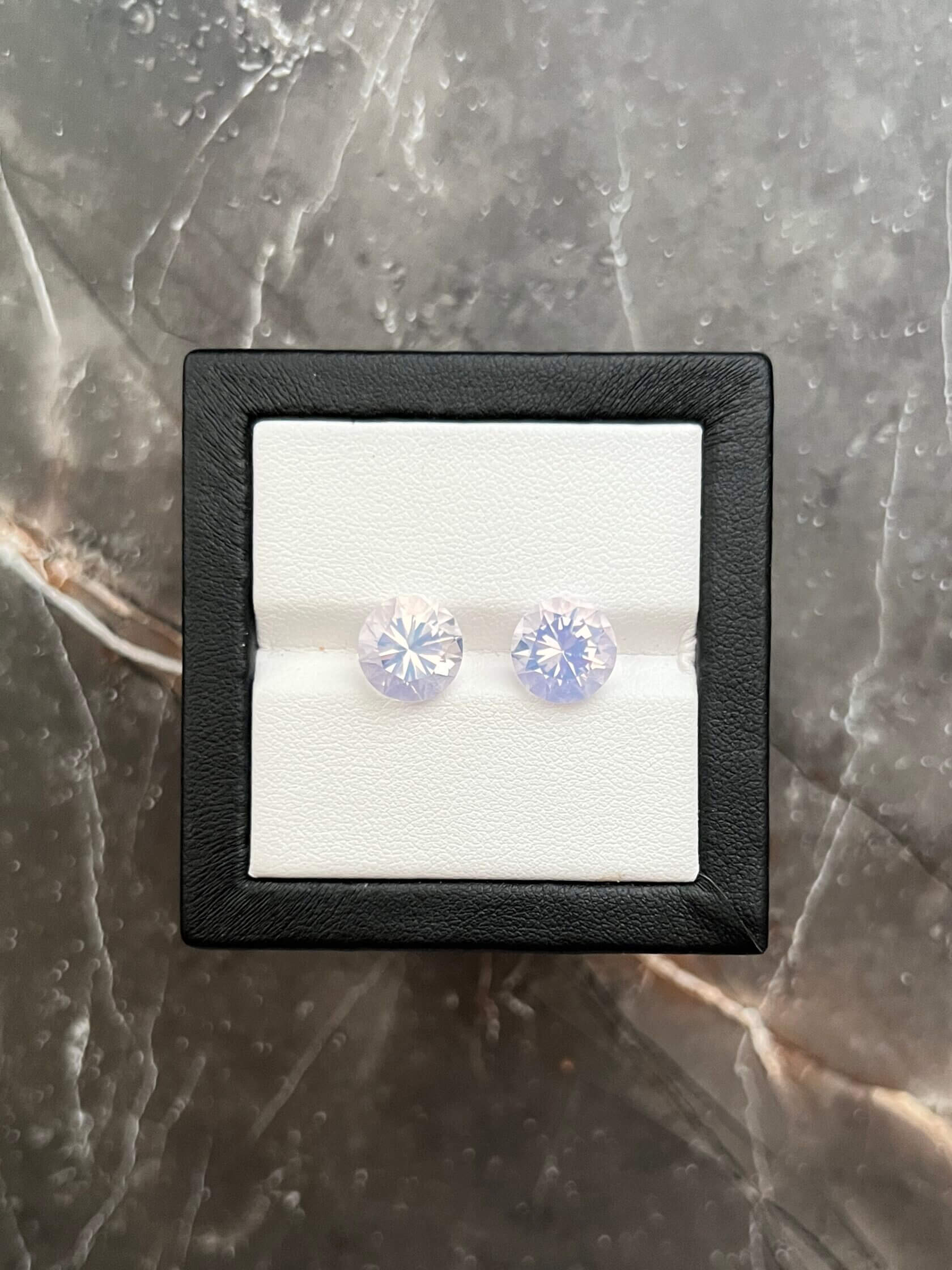 Пара лавандовых кварцев с весом 6.88 карат в огранке круг.