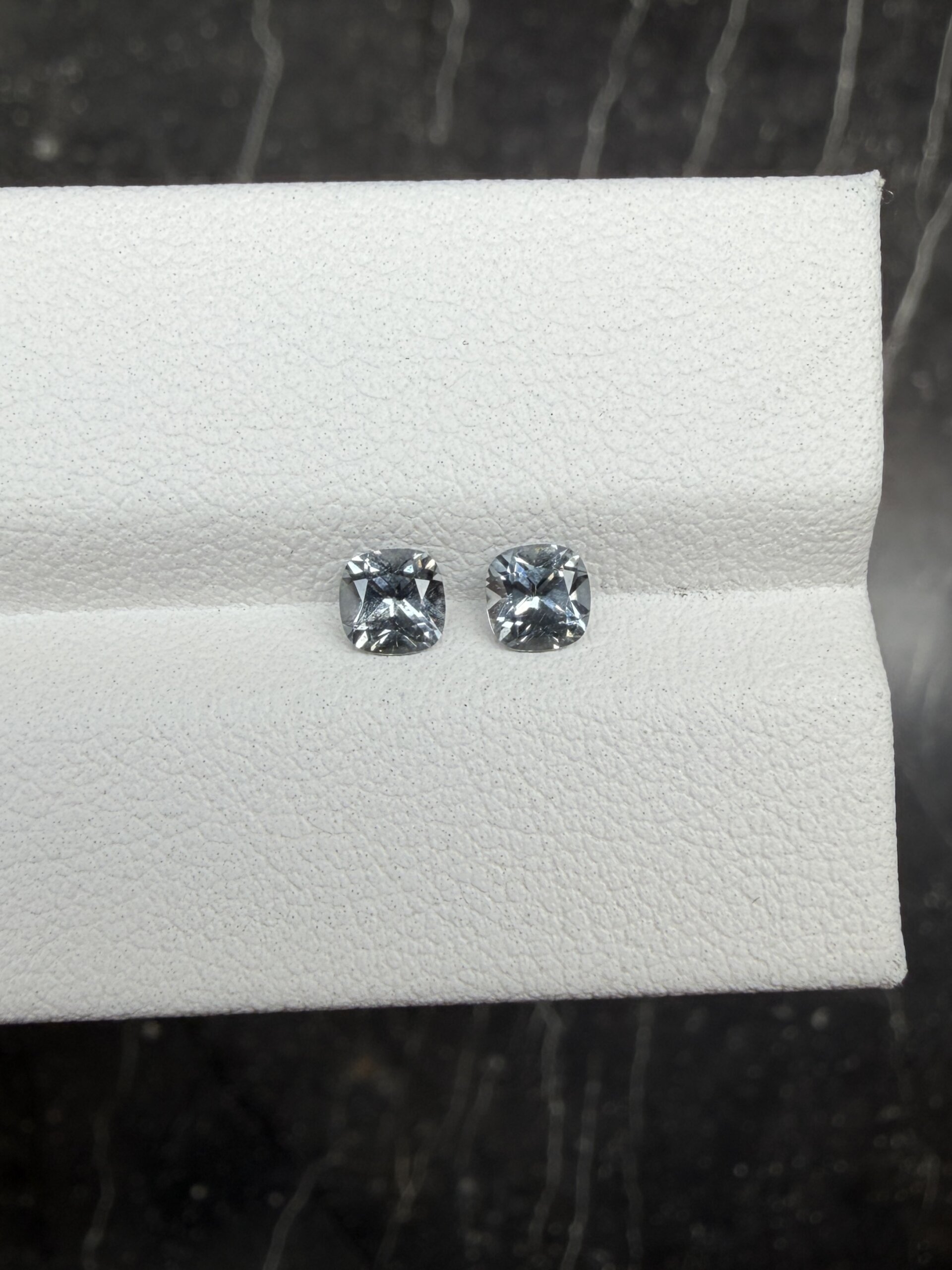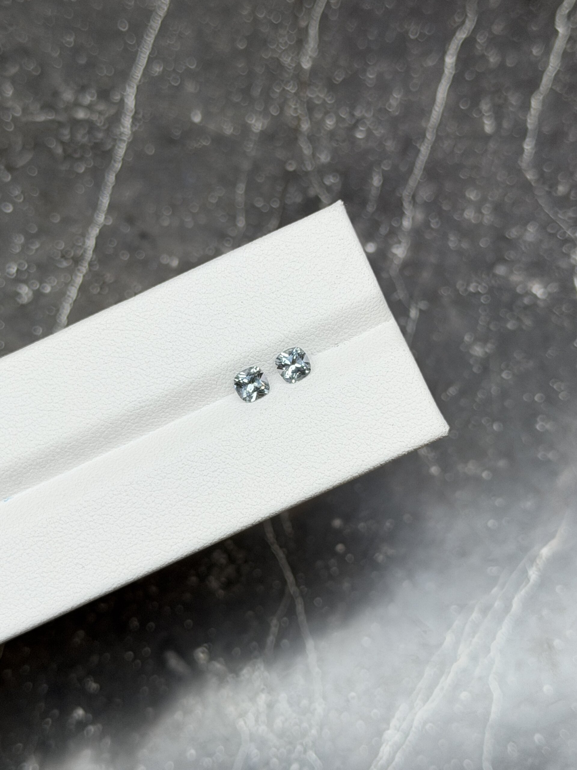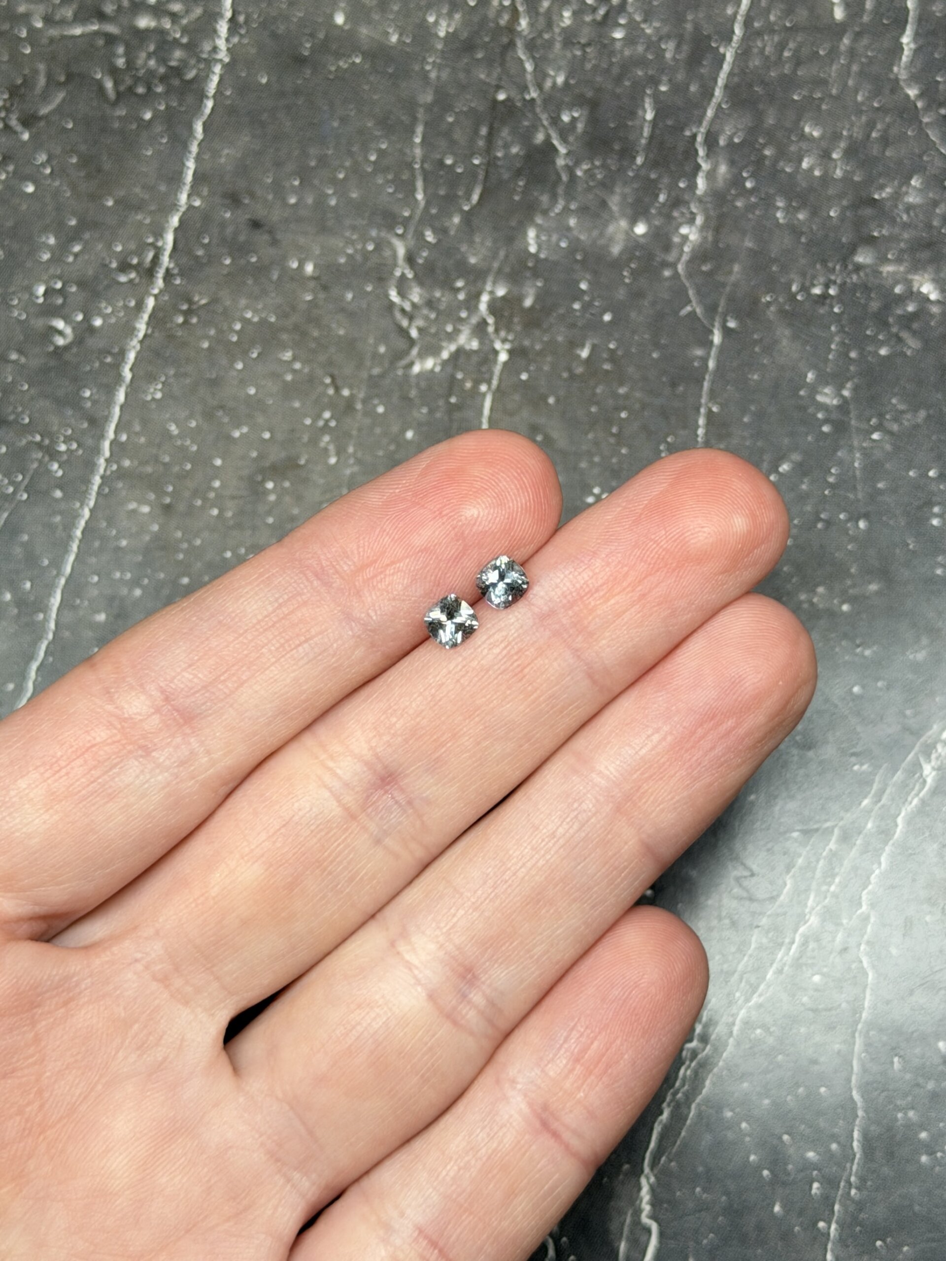 Серая шпинель находится в тренде как на мировом, так и на российском ювелирном рынке уже несколько лет. В России она известна под торговым наименованием «грозовая шпинель», в международном пространстве чаще используют другие названия -стальная серая, серебристая. Цвет серой шпинели обусловлен примесью железа в составе минерала. Практически вся серая шпинель проявляет незначительный вторичный оттенок — голубоватый или сиреневый, особенно это заметно при просмотре камня под тёплым источником освещения. Очень редко можно встретить шпинель абсолютно нейтрального серого цвета, без дополнительных оттенков.