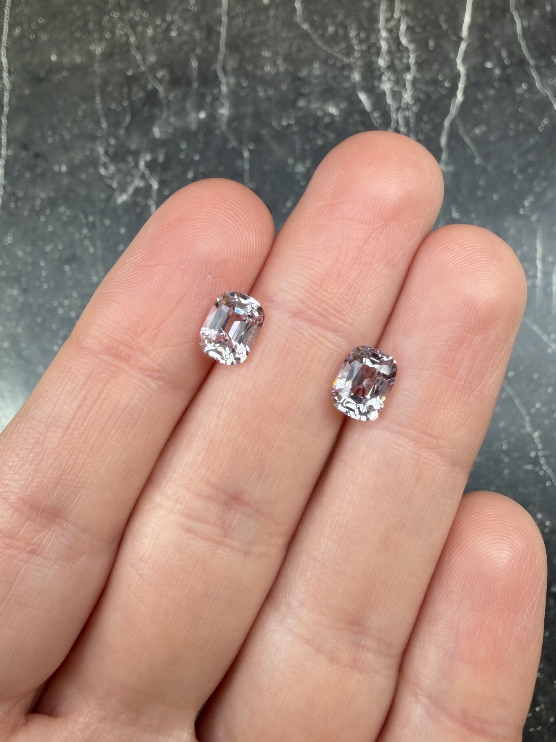 Светло-серебристая шпинель с весом 2.72 карат в огранке кушон. Серая шпинель находится в тренде как на мировом, так и на российском ювелирном рынке уже несколько лет. В России она известна под торговым наименованием «грозовая шпинель», в международном пространстве чаще используют другие названия — steel gray (стальная серая), silver grey (серебристая). Цвет серой шпинели обусловлен примесью железа в составе минерала. Практически вся серая шпинель проявляет незначительный вторичный оттенок — голубоватый или сиреневый, особенно это заметно при просмотре камня под тёплым источником освещения. Очень редко можно встретить шпинель абсолютно нейтрального серого цвета, без дополнительных оттенков. Самые богатые в мире запасы серой шпинели расположены в Мьянме (Бирме), также она добывается в Танзании и на Шри-Ланке. Посмотреть камень вживую можно в нашем шоу-руме, предварительно записавшись через форму обратной связи.