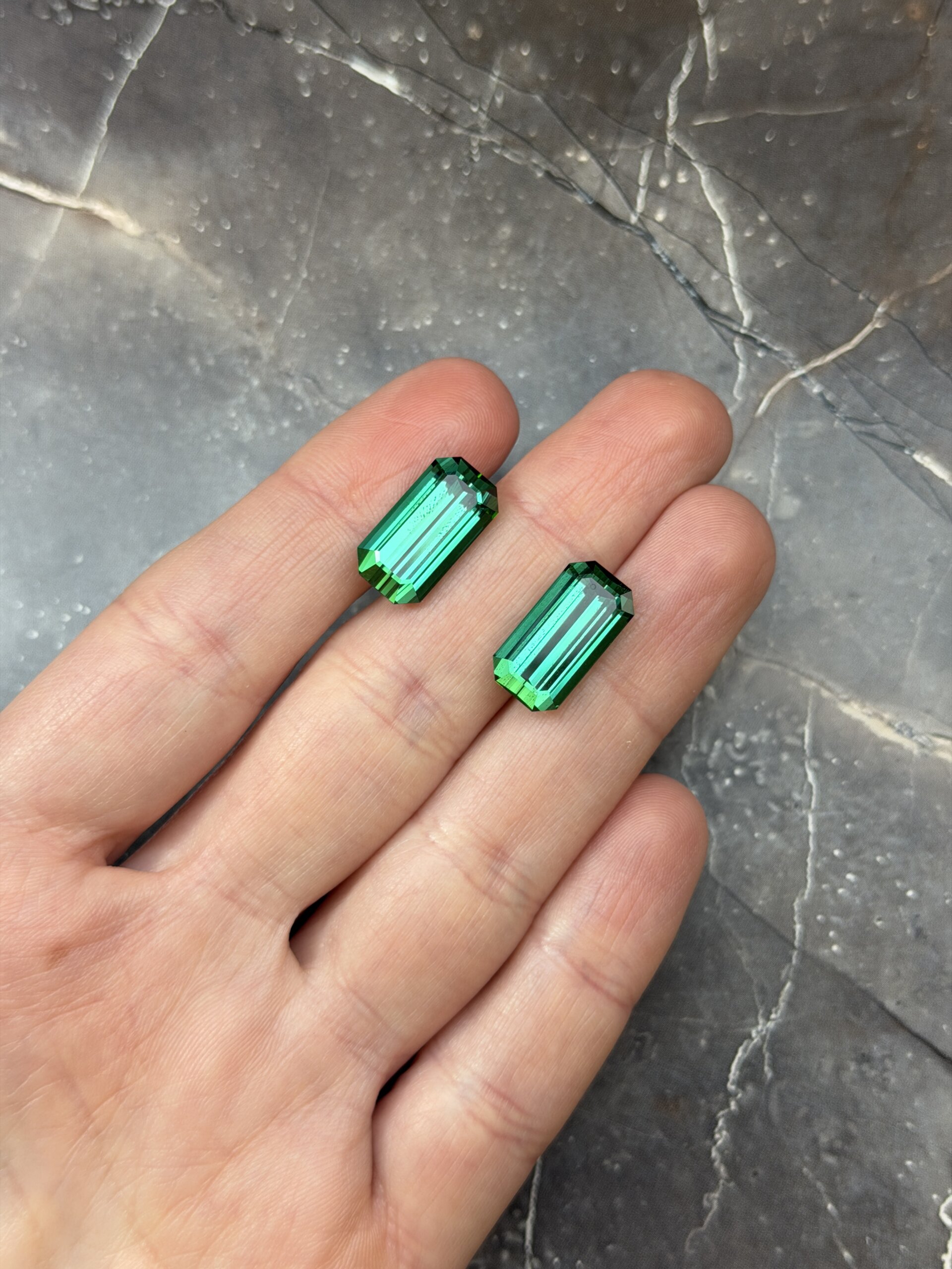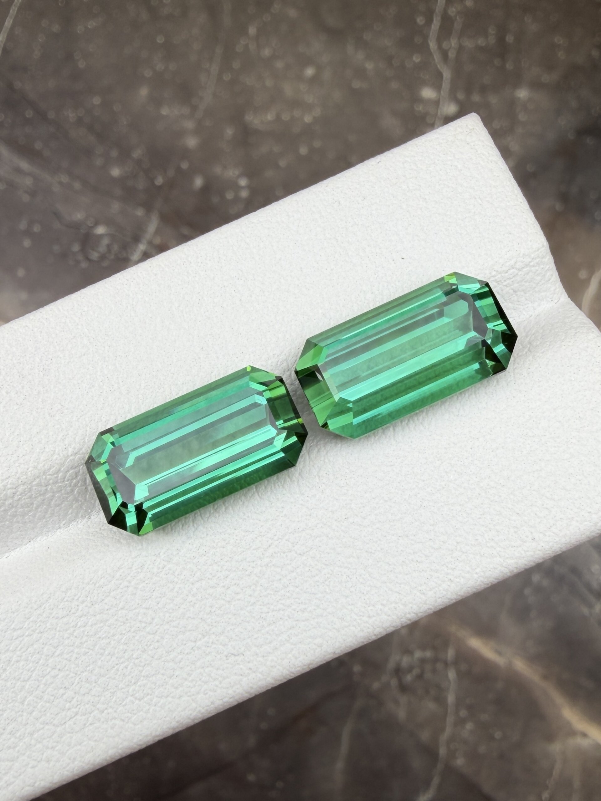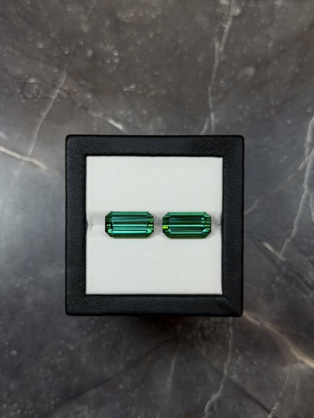 Пара голубовато-зеленых турмалинов в огранке октагон.