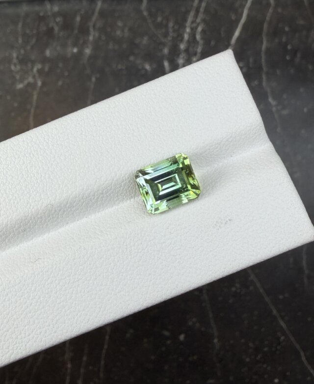 Мятный турмалин в огранке октагон с красивым переходом цвета от насыщенного зеленого к светлому. Рекомендуем сочетать данный камень с гранатом цаворитом.