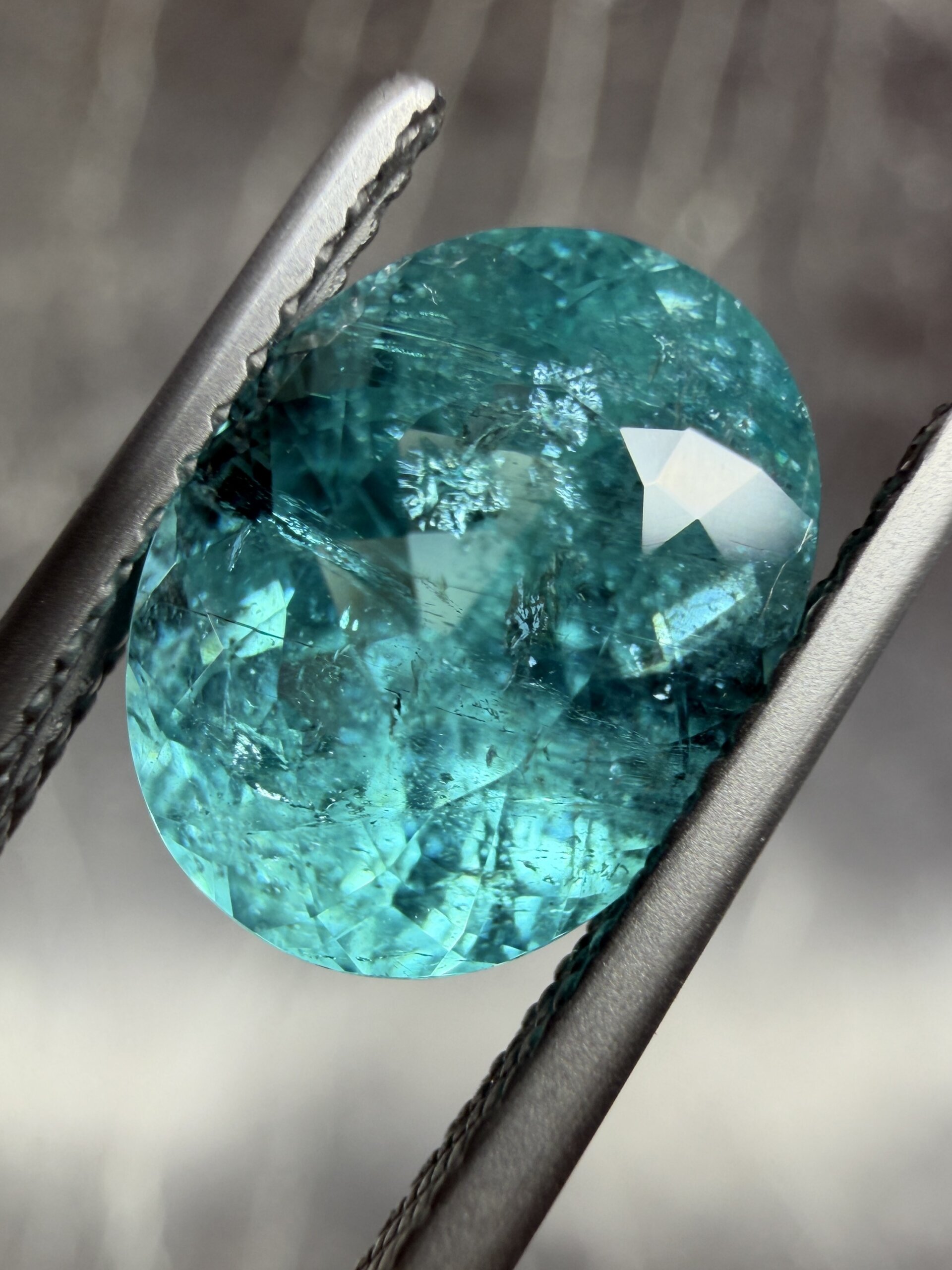 Турмалин-параиба из Мозамбика весом карат в огранке овал. Цена по запросу.