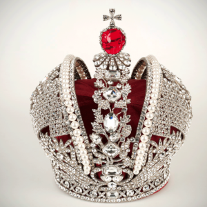 Обращаясь к сокровищам Алмазного фонда, стоит упомянуть Большую императорскую корону, которая была создана для коронации императрицы Екатерины II в 1762 году придворным ювелиром Георгом Фридрихом Экартом и бриллиантовых дел мастером Иеремией Позье. Корону Российской империи украшают 4936 бриллиантов общей массой 2858 карат, 75 индийских крупных матовых жемчужин и самый известный из драгоценных камней короны — шпинель массой 398,72 карата.